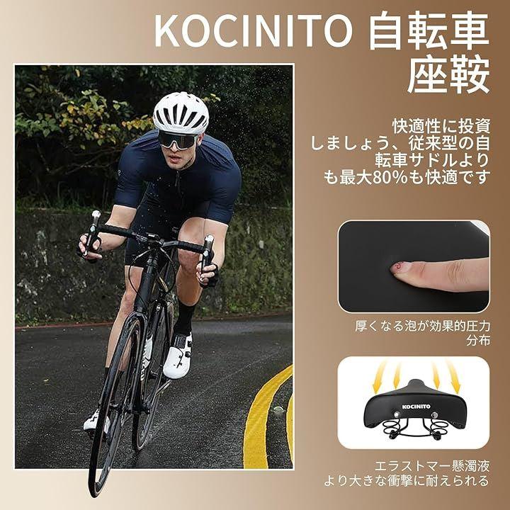 「人間工学デザイン」 この自転車サドルは前が狭く、後ろが広い形状で、圧力を効果的に分散させ、太ももとの摩擦を防ぎます。