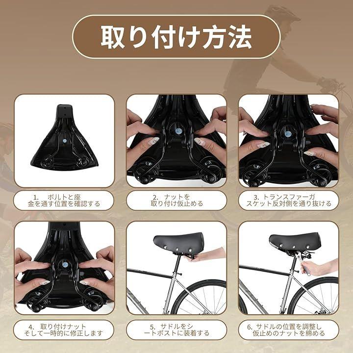 「ファッションデザイン」スタイリッシュな茶色の色合いと側面の鋲釘デザインは、一般的な通勤自転車サドルとは異なり、爽やかな印象を与えます。