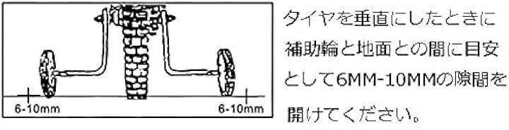 (ご注意:タイヤを垂直にしたときに補助輪と地面との間に目安として6MM-10MMの隙間を開けてください。
