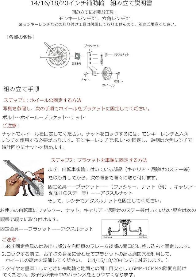 子供用自転車 補助輪が取り付け説明書と組立て時に必要な部品を付属しているのでご心配してください。