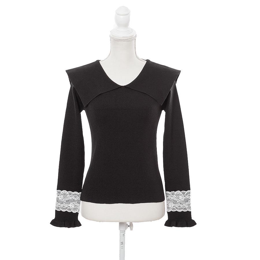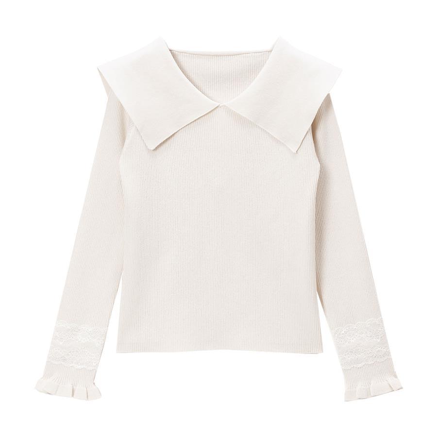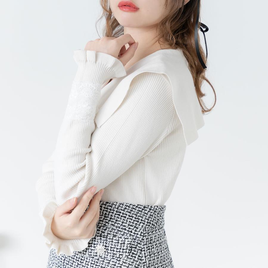 トレンドの大きめカラーが目を惹く、可愛いと上品を詰め込んだデザインニットトップスです。