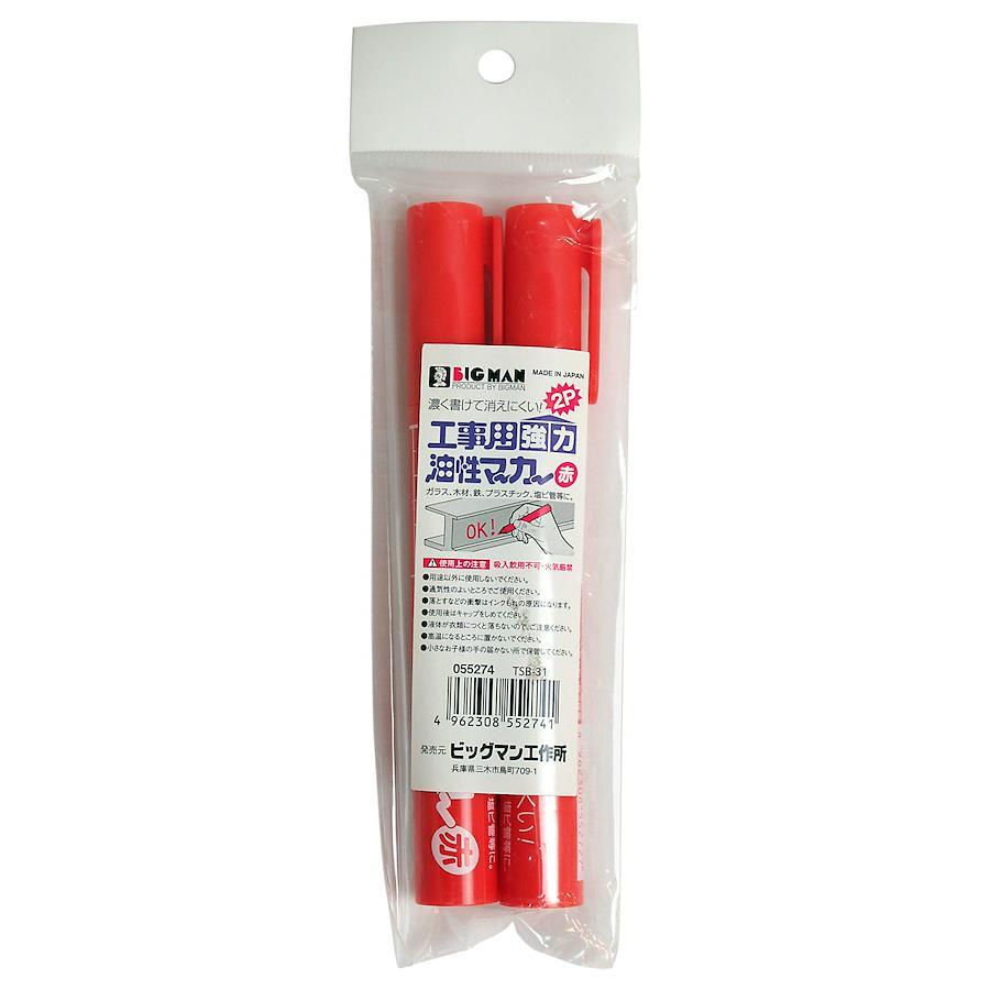 工事用強力マーカー 入数:2P カラー:赤 対象材:ガラス・鉄・木材・プラスチック・塩ビ管など 材質:PP インク:アルコール染料 インク内容量:4.5ml ●濃く書けて消えにくい