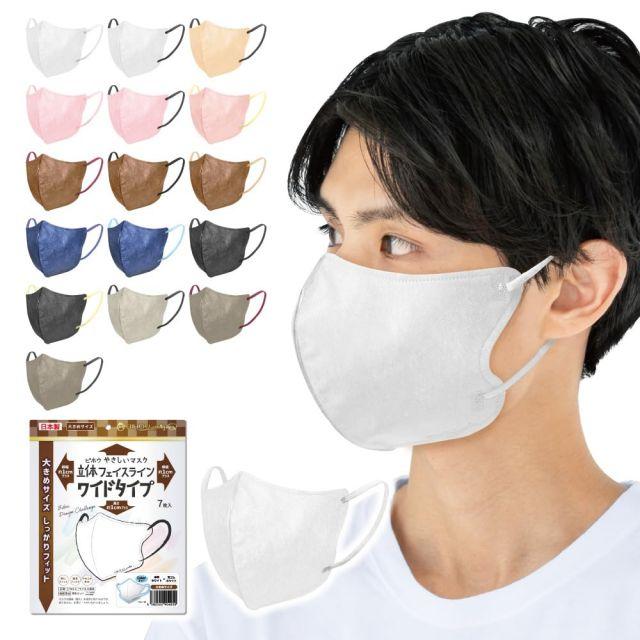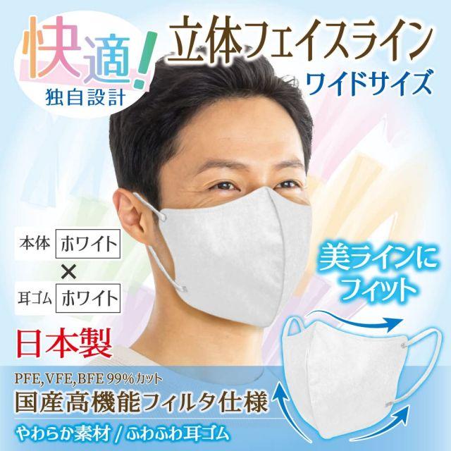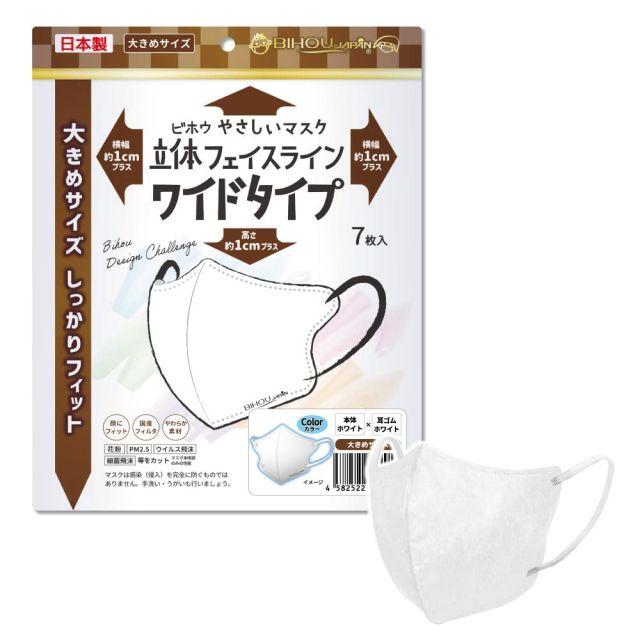 サイズ:ワイド・1袋◆商品名:【ビホウマスク安心の日本製自社製の国産高機能フィルタ使用!フェイスラインにしっかりフィット頬まで覆うワイドサイズで身体の大きな方にもおすすめ!多彩なカラーバリエーション個性に合わせて選べる楽しさ!】立体フェイスラインやさしいマスク(ホワイト×ホワイト)ワイドサイズ7枚入1袋