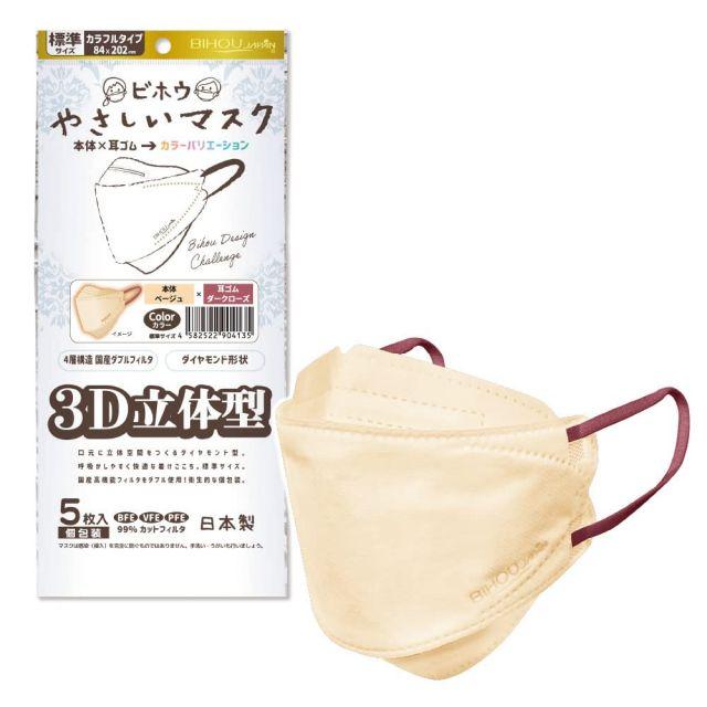 スタイル:ウエスタン◆商品名:【ビホウマスク安心の日本製4層構造国産高機能フィルタをダブル使用!本体×耳ゴムの組み合わせで多彩なバリエーション!個性に合わせて選べる楽しさ】3D立体型やさしいマスクカラフルタイプ(ベージュ×ダークローズ)標準サイズ5枚入1袋