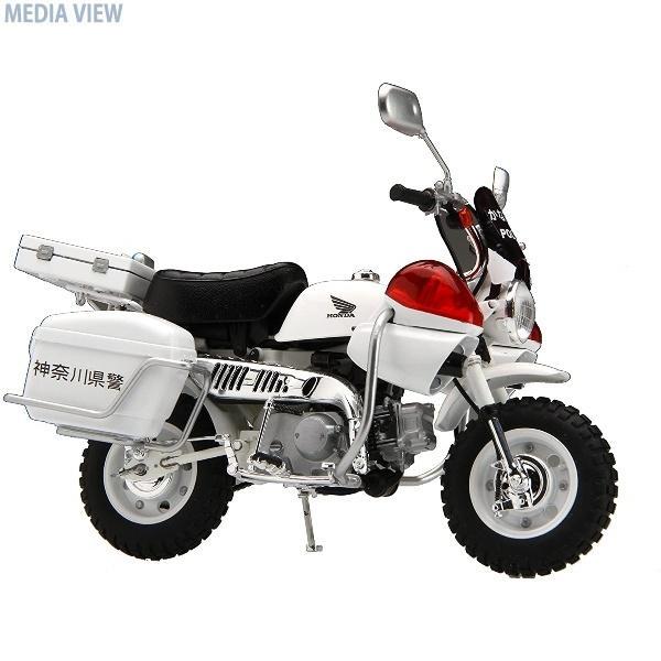 フジミ模型 1/12 バイクシリーズNo.15Honda モンキー 白バイ仕様 ホンダ・モンキーをベースに造られた「ミニ白バイ」。神奈川県警が広報展示目的で所有するため、ナンバープレートはなく公道走行は不可ですが、れっきとした警察車両です。パトランプ、サイレン、サイドボックスをしっかりと装備しています。