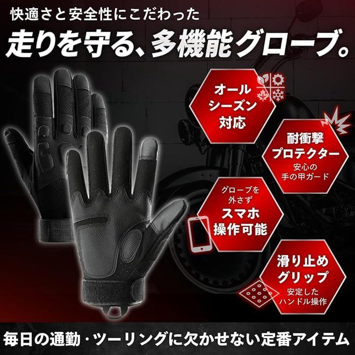 「耐衝撃プロテクター搭載」転倒時の衝撃を分散し、手の甲を守る安心設計のバイクグローブ。