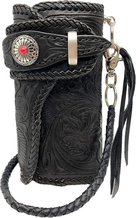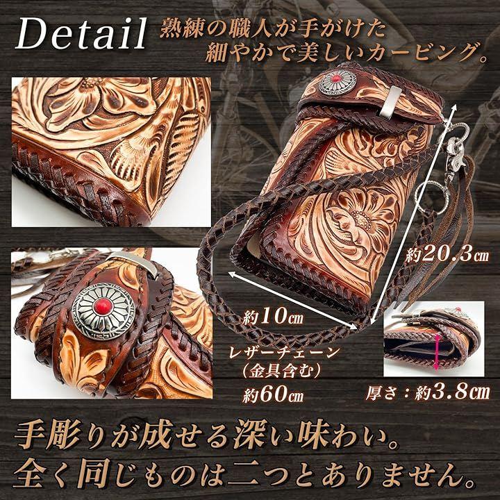 「美しい手彫りの模様」革素材の持つ風合いを活かしたバイカーズウォレット。