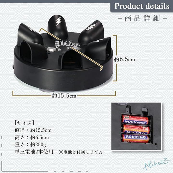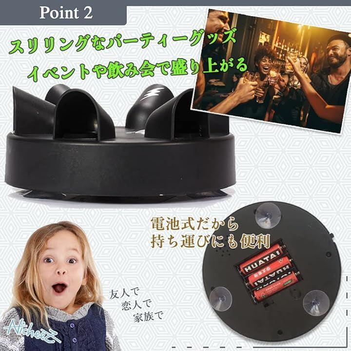 「商品内容」ビリビリロシアンルーレットゲーム セット数:1個入 カラー:黒 重さ:約250g サイズ:直径約15.5cm 高さ約6.5cm *要単三電池三本(電池は付属しません)