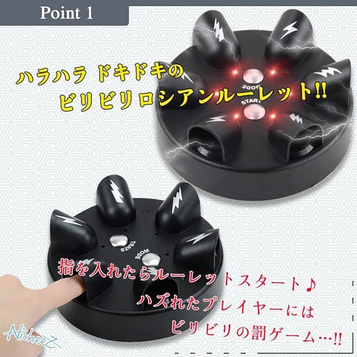ルーレットが回り、ハズレた人にビリビリ電流が流れるロシアンルーレットゲームです。