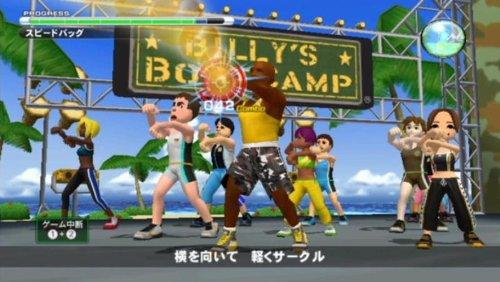 Wiiのビリーはアクションエクササイズゲーム! だから、楽しい!簡単!続けられる! 世界中で大ヒットを記録した『ビリーズブートキャンプ』がWiiで登場。 ビリー考案のハードなトレーニングもゲーム感覚でプレイできるので、誰でも簡単に楽しく続けることができます。 ★こんな方にオススメ★ 「Wii版『ブートキャンプ』で簡単トレーニングを実践したい人」 「楽しくダイエットしたい人」 「ゲームで理想のボディを手に入れたい人」 「新たにWiiを使ったエクササイズゲームの購入を考えている人」 カラダを引き締める40種類のアクションパターン 両手にコントローラーを持ち、画面のビリーをまねてアクション!飛んでくるボールに合わせてテンポよく繰り返したり、同じポーズを一定時間キープしたり。 ビリー考案の効果的なアクションで全身をシェイプアップ。 ◆目的に応じて選べる充実のダイエットメニュー 集中的に引き締めたい部分の指定や、その日の体調や気分、レッスン時間や消費したいカロリーに至るまで、条件を細かく指定することが可能。 もちろん、レッスン内容をビリーにまかせてもOK! ■「休日前だからいつもよりハードに運動しよう」「まだ筋肉痛が残っているから軽めにしておこう」 →運動強度とプレイ時間を選んでブートキャンプ! ■「二の腕のたるみが…」「割れた腹筋を手に入れたい」「昼間食べたケーキの分を消費したい」 →集中して鍛えたい所や、消費したいカロリー量を選んでブートキャンプ! ■「全身を短期的に鍛えたい」「ビリー隊長を信じてどこまでもついて行く」 →7日間集中エクササイズでブートキャンプ! ◆ブートキャンプを盛り上げるダンス系ヒットチューン エクササイズにピッタリな、全10曲のダンス系ヒットチューンでレッツエンジョイブートキャンプ! 【収録楽曲】 DON’T STOP ME NOW / Y.M.C.A. / THE LOCO-MOTION / WANNABE / VENUS / THE FINAL COUNTDOWN / I’M IN THE MOOD FOR DANCING / GO WEST / LIVIN’ LA VIDA LOCA / EAT YOU UP ◆ダイエットの継続をサポートするゲームならではの様々な演出 プレイ状況に応じて飛んでくるビリーからの熱い叱咤激励。Miiを使用すれば、さらに臨場感とやる気もアップ! また、ダイエットの障壁の一つでもあるデータ管理もビリーにお任せ。日々の結果を自動でグラフ化。 その他、アクションカードや勲章など、コレクション要素も満載。 ◆バランスWiiボードでアクション追加 「バランスWiiボード」の使用で、さらに10種類のアクションを追加。より全身を使ったエクササイズが可能に! ※バランスWiiボードがなくてもすべてのメニューを楽しめます。