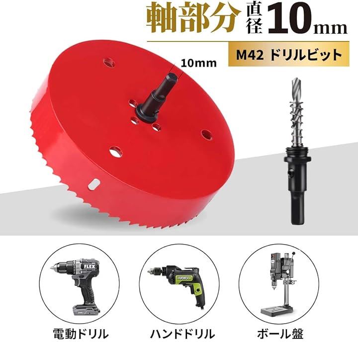 全66サイズ展開「材質」刃部は高品質のバイメタルを使用してます、切れ味、耐腐食性と耐摩耗性は強化され、耐久性もあります。