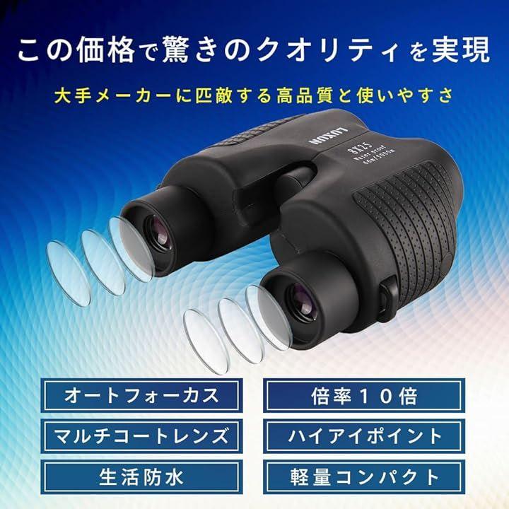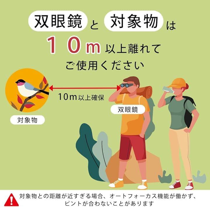 自動ピント調整とオートフォーカス機能により、素早くクリアな視界を確保でき、倍率10倍の性能で遠くの対象物も詳細に観察できます。