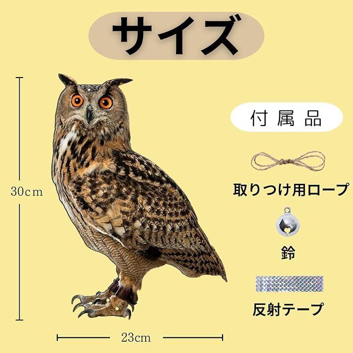 「フクロウ・鷹モチーフで視覚的威嚇」 鳥類が本能的に恐れるフクロウや鷹の姿をリアルに再現したデザイン。