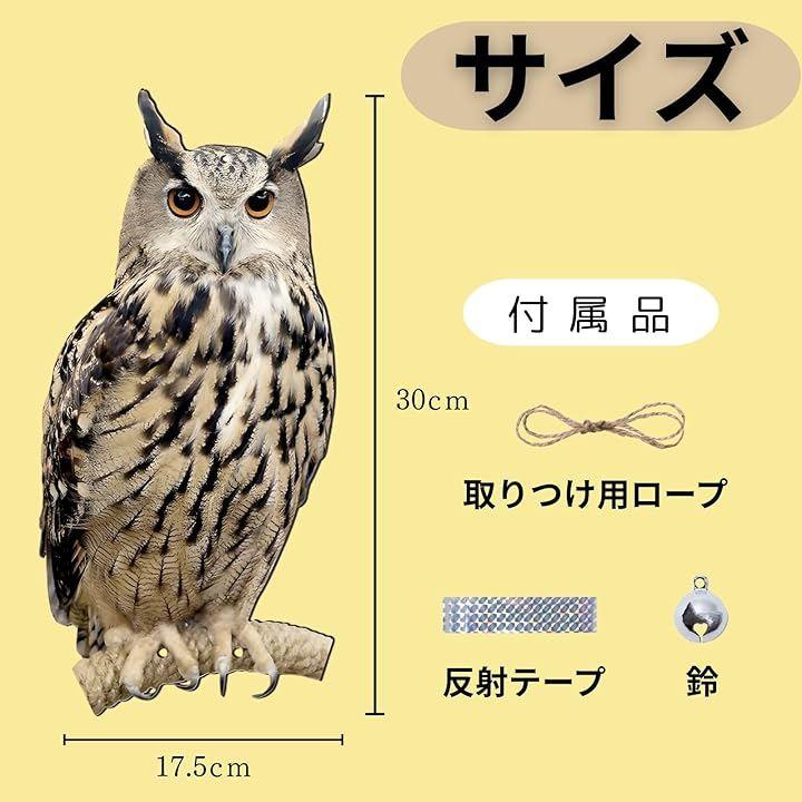 「フクロウ・鷹モチーフで視覚的威嚇」 鳥類が本能的に恐れるフクロウや鷹の姿をリアルに再現したデザイン。