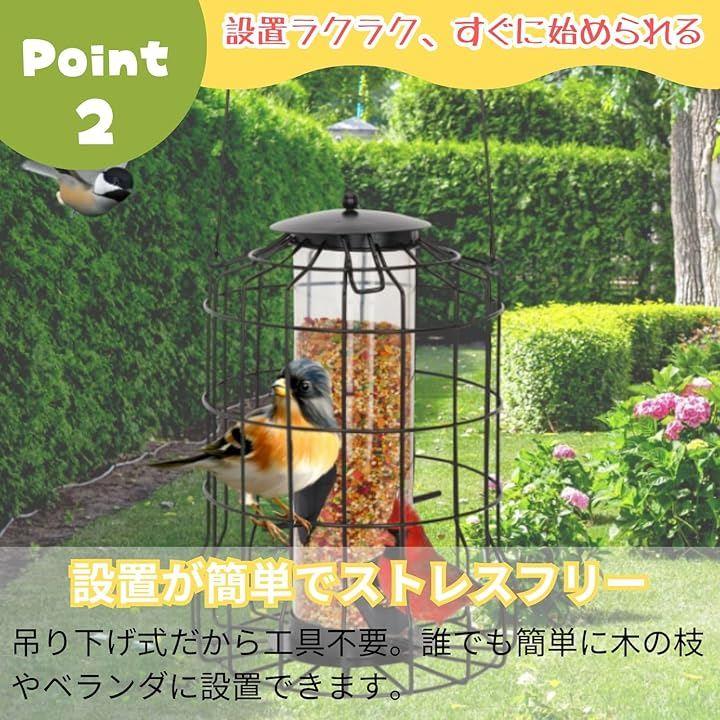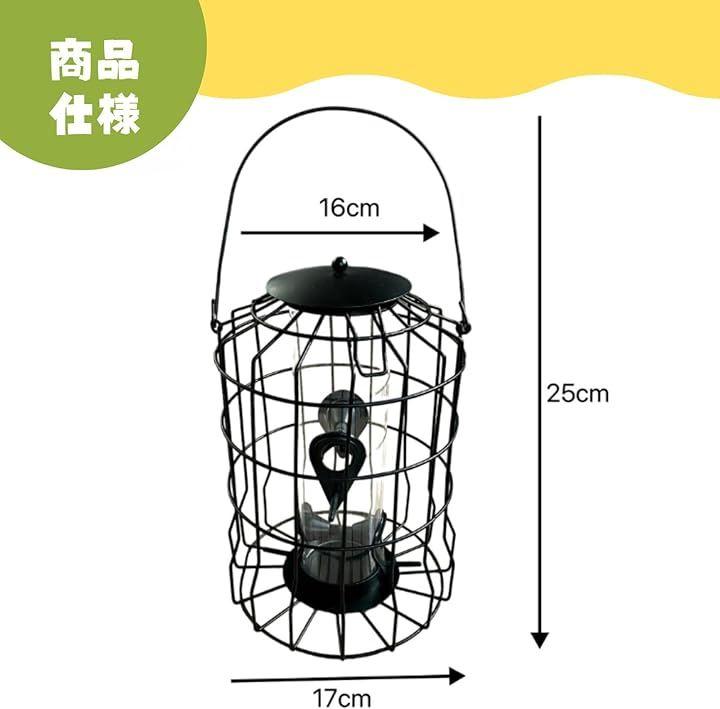 「小鳥が安心して集まる設計」上部直径16cm、下部直径17cm、長さ25cmという安定感のあるサイズで、複数の小鳥が同時に留まることができます。