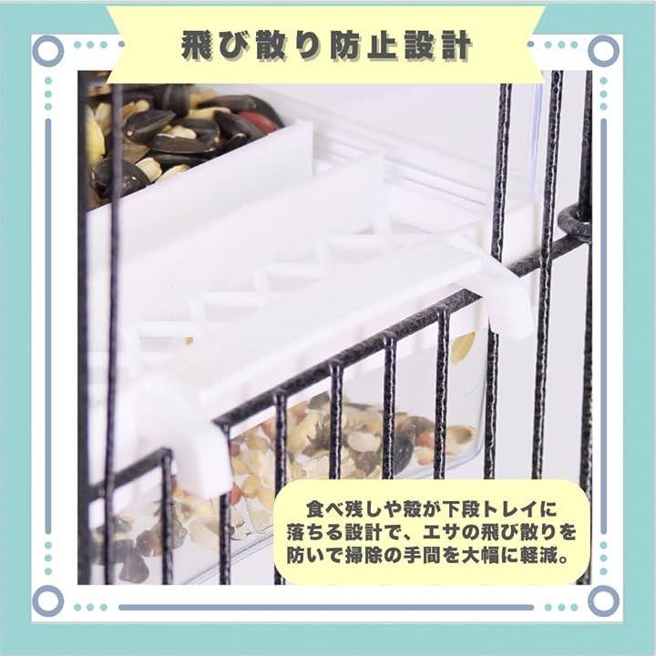 「飛び散り防止設計」食べ残しや殻が下段トレイに落ちる設計で、エサの飛び散りを防いで掃除の手間を大幅に軽減。