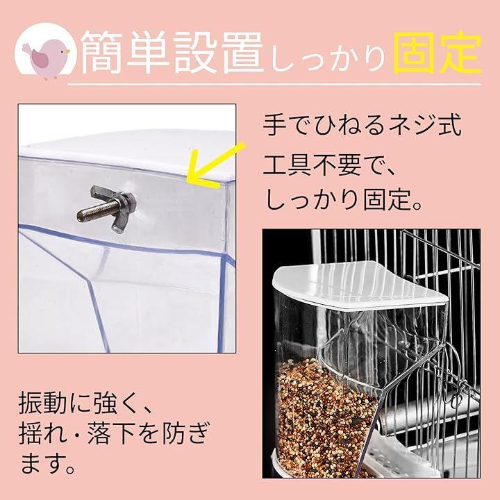 スペースを取らないコンパクト設計で、多羽飼いや狭いケージにも便利です。