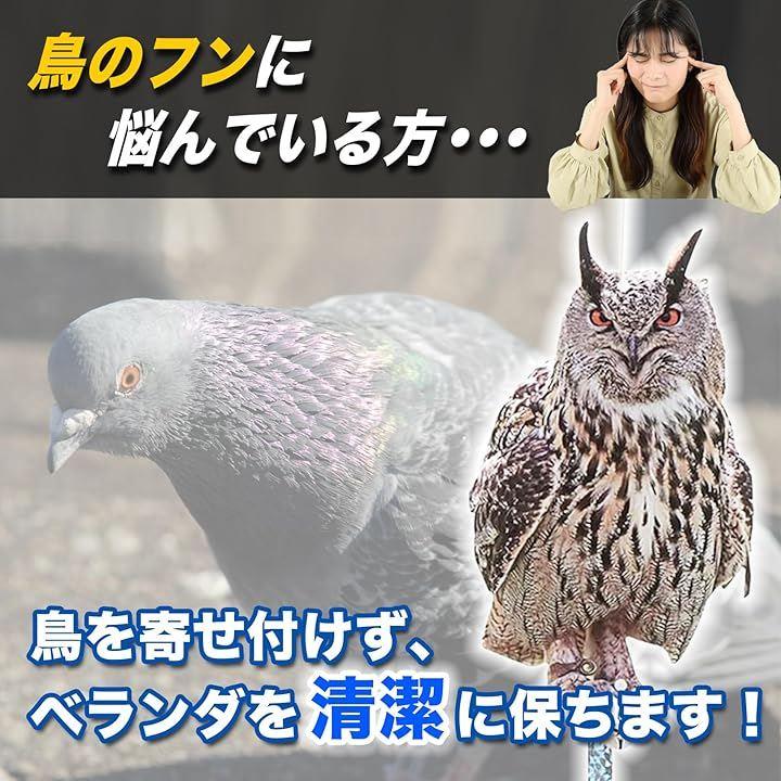 鳥よけボードは、リアルなサイズ感とビジュアルのフクロウ型ボードとテープのセット。