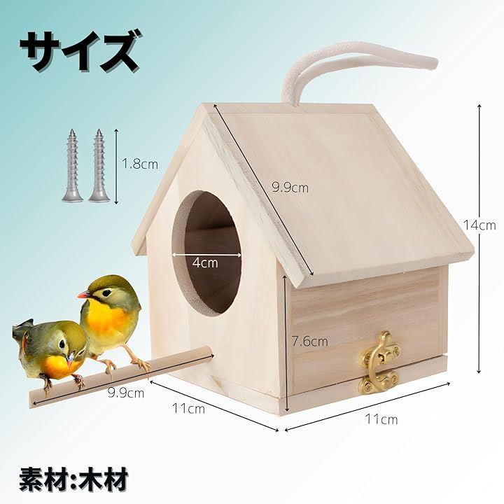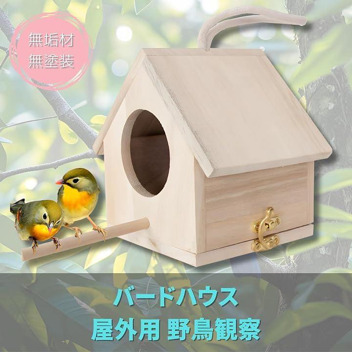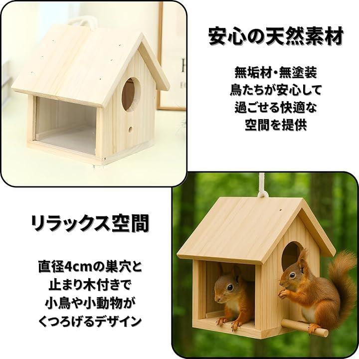 「安心の天然素材」このバードハウスは、無垢材・無塗装で作られており、鳥たちが安心して過ごせる快適な空間を提供します。