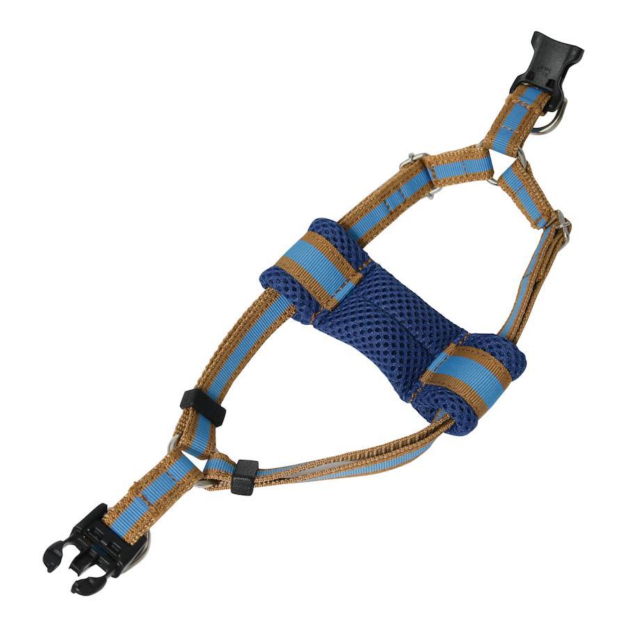 サイズの調整がしやすく、体を包み込むクッション性のある胸当てが特徴のハーネスです。トイプードルから柴犬など幅広い犬種に。胸元にヌメ革のネームタグ、スワロフスキーエレメンツがポイントです。【サイズ】胸囲:34~48cm 幅:1.5cm 【重量】51g 【素材】ポリエステル・PP 【色展開】■レッド ■ピンク ■ブルー ■オレンジ ■パープル 日本製