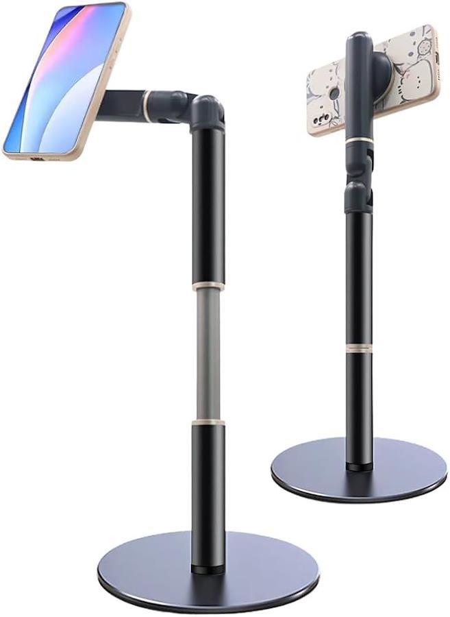 最適なアングルを、ミリ単位で調整」アームは高さ(27-52cm)と水平位置の調整に加え、5つの可動軸により、スマホの角度を自由自在に設定可能。