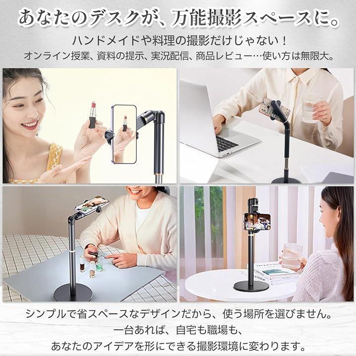 真上からのアングルを、思いのままに」ハンドメイド作品の制作風景や、料理のレシピ動画、イラストのメイキングなど、これまで諦めていた「真上からの手元撮影」を可能にする俯瞰撮影用スマホスタンド。