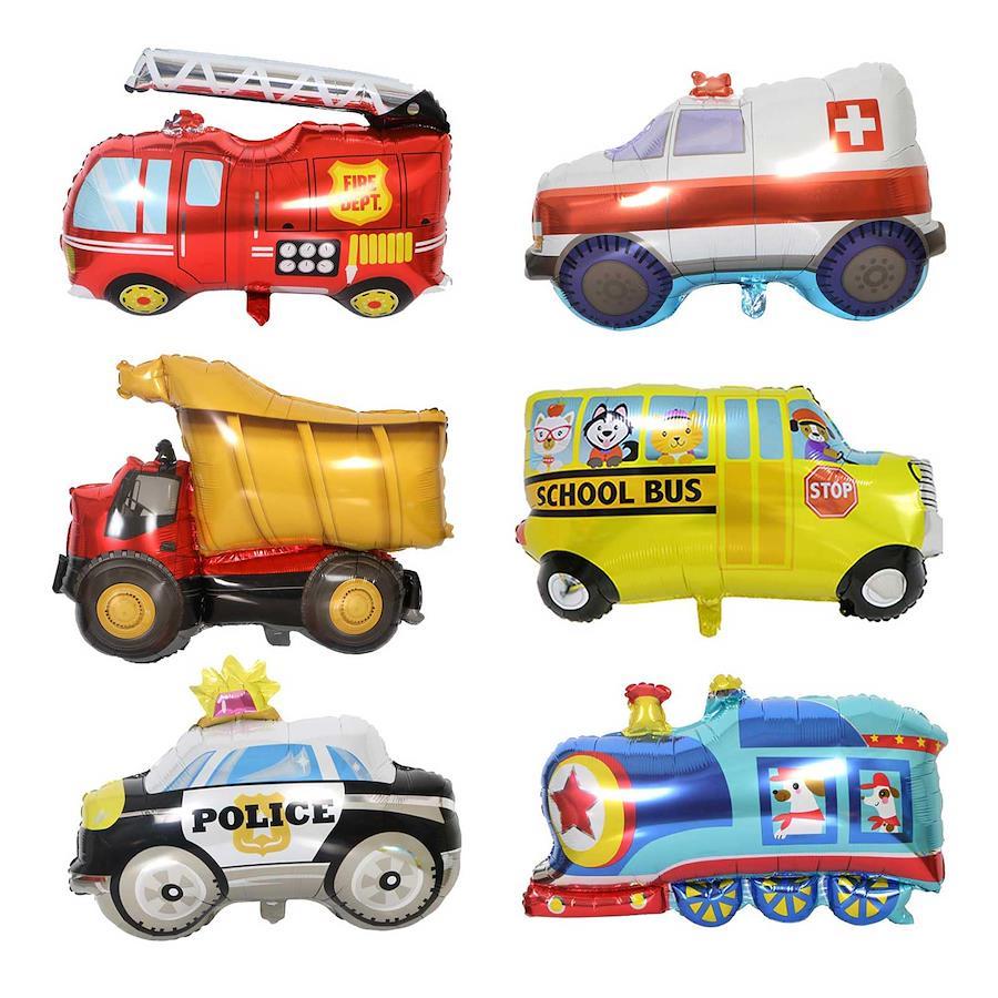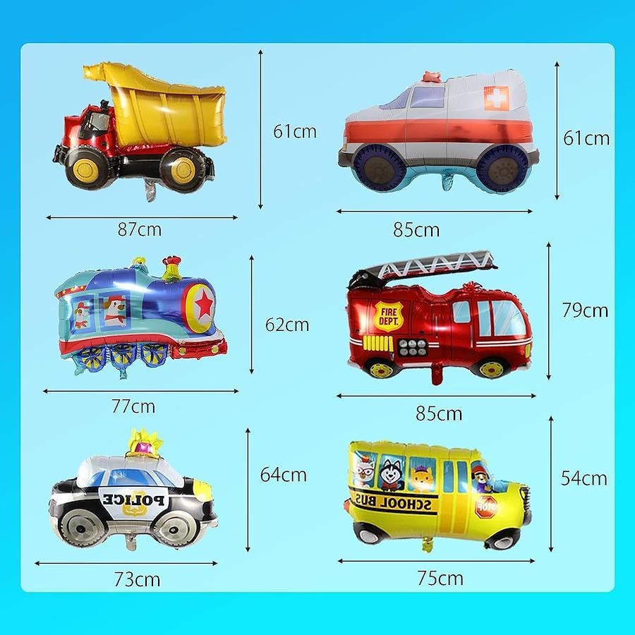 通常1-5営業日で発送【新品未開封品】【働く車バルーン6体 セット内容】BIG救急車BIG パトカーBIG 消防車BIG バスBIG 蒸気車x1BIGリジッドダンプトラックサイズ:80cm~100CM