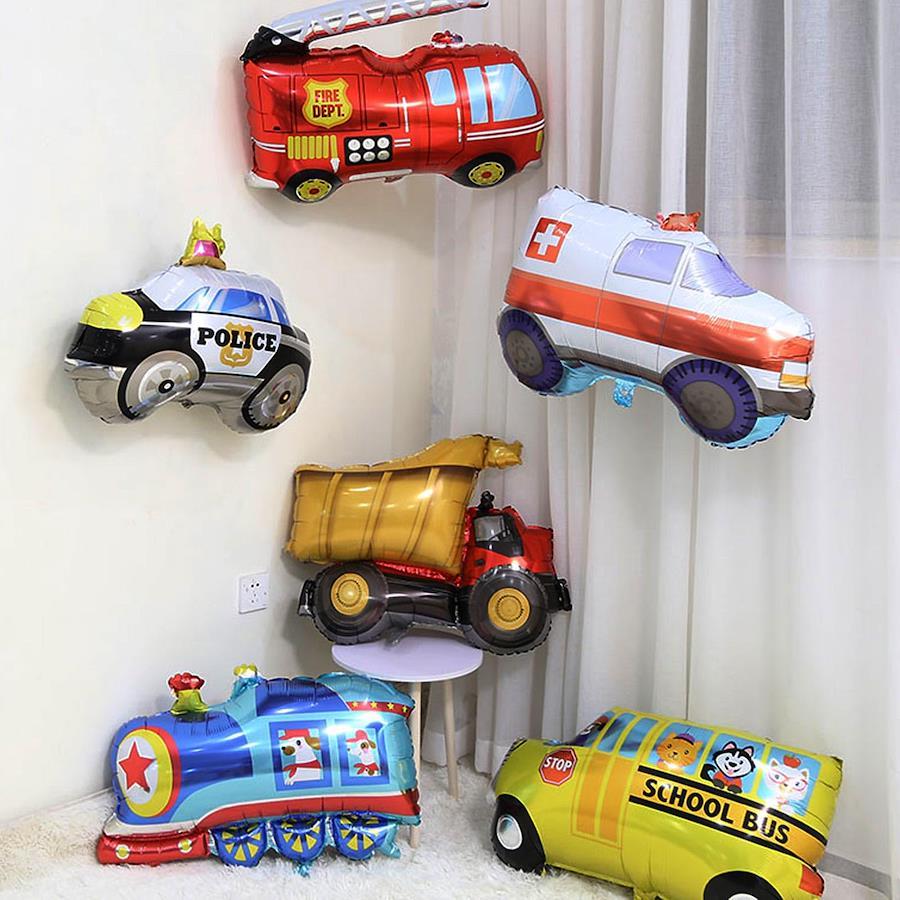 【車が大好き!飾り付けお誕生日セット】:乗り物好きにはたまらない!子供も大人も大喜びのビッグサイズの大迫力乗り物バルーン。お誕生日パーティーの飾り付けやお部屋のインテリアとして使用するのもオススメです!単体で飾ったり、色々なバルーンや飾りと組み合わせたりと豪華で華やかに大変身!特別な日を最高の飾りつけで素敵な思い出にしましょう!!別売りのヘリウムガスでふわふわと浮きますよ♪
