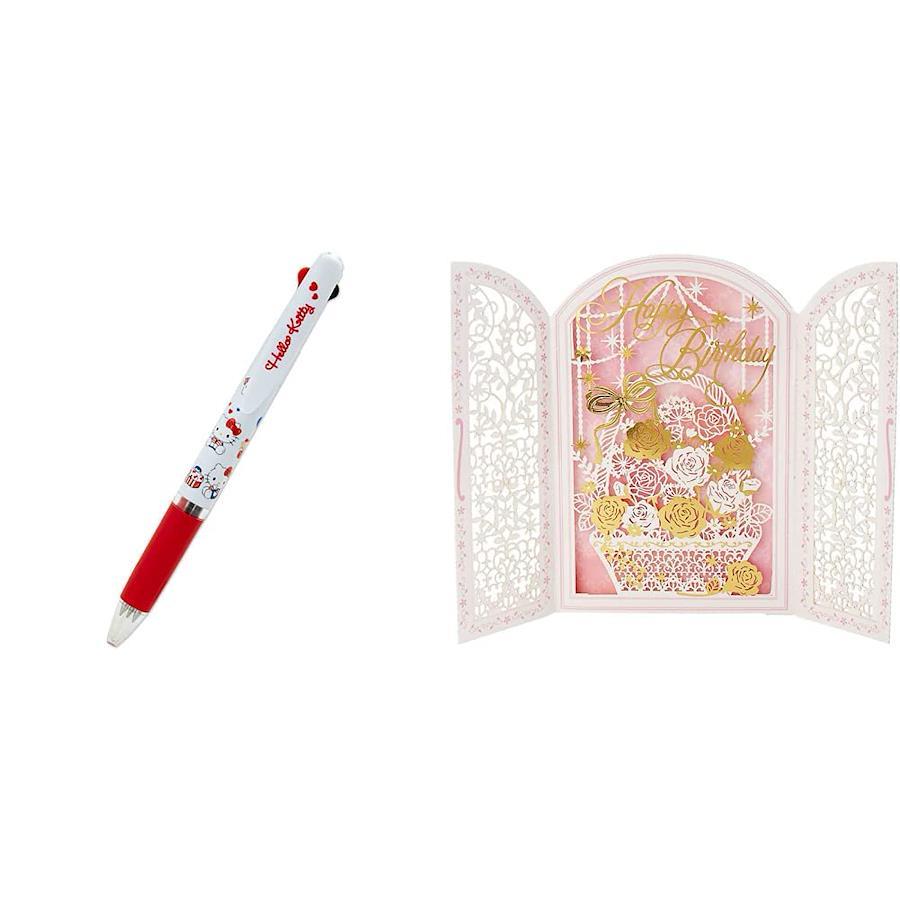 【誕生日カードセット(2)】サンリオ(SANRIO) ハローキティ 三菱鉛筆 ジェットストリーム 3色ボールペン 982075 + バースデーカード レーザーカット ケーキ グリーティングカード