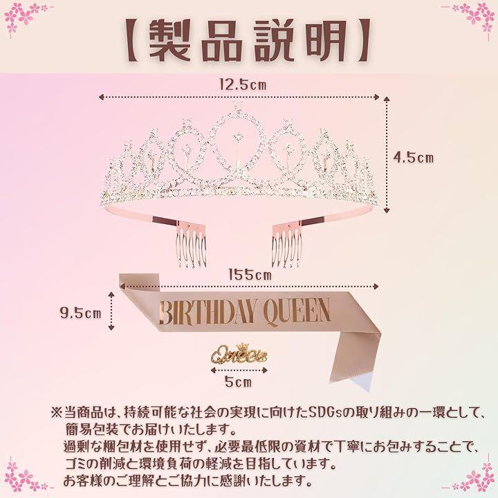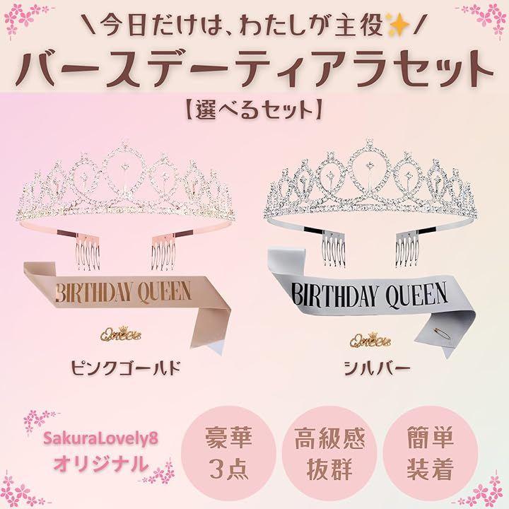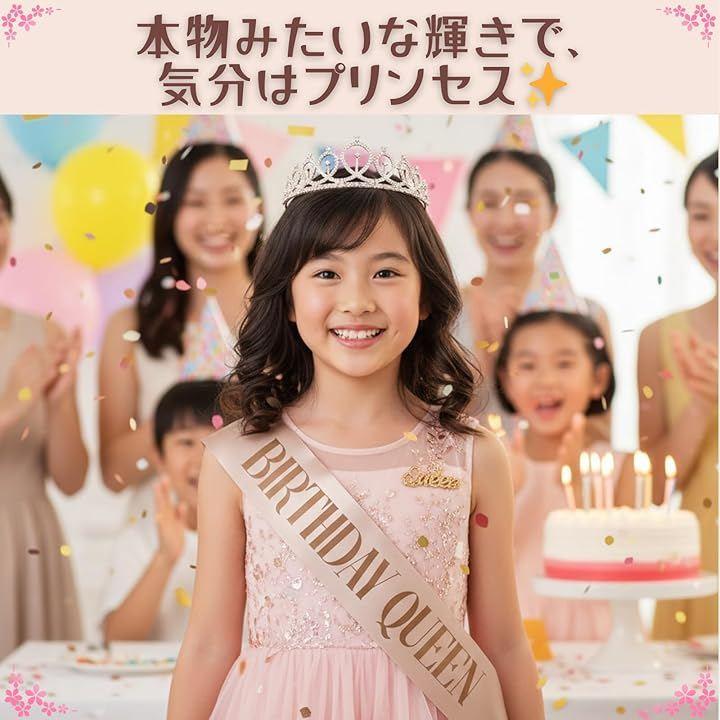 「誕生日を華やかに彩る豪華3点お祝いセット」バースデーセットは、主役を引き立てる「おしゃれなティアラ」、メッセージ入りの「文字付きたすき」、そしてアクセントになる「キラキラブローチ」が揃った豪華3点セットです。