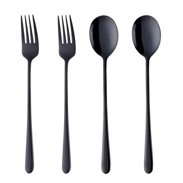 スタイル:ミニマリスト◆商品名:Bisdaカトラリーセットスプーンフォーク黒色2名用ステンレス製耐久性有り鏡面仕上げカレーパスタサラダスープ家庭来客業務用(4本セット)