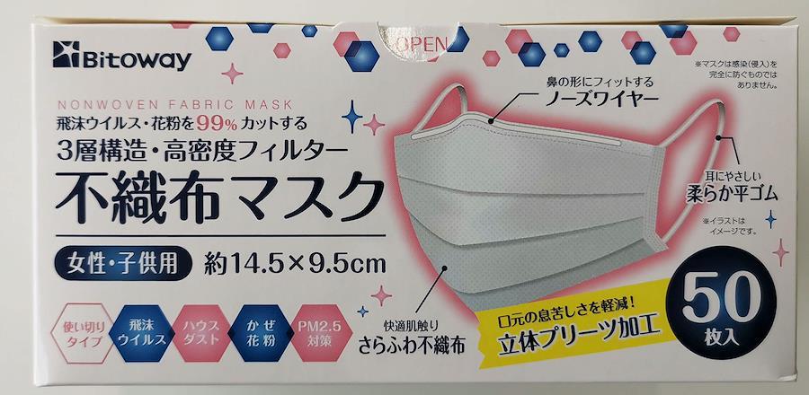 Bitoway 3層構造 不織布メディカルマスク 50枚入 女性・子供用 2個セット 5セット以上7枚プレゼント