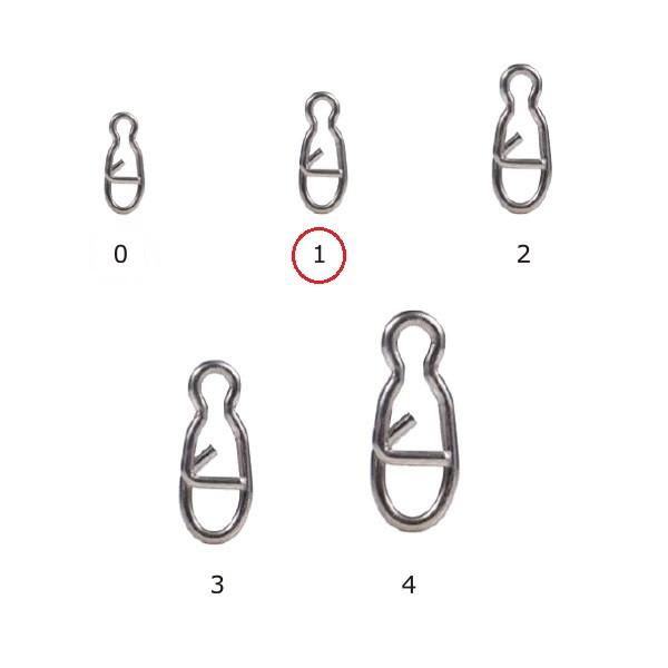 究極の『ワンタッチスナップ』。ワンモーションで、グローブを着けた状態でも着脱可能。ルアーチェンジのタイムロスを減らしチャンスを逃さない!スリム形状にする事により線形サイズを上げ、強度を補強すると共に、ゴミの回避率を向上させています。 サイズ:♯1 入数:10 コーティング:Stainless Steel 強度(kg):9 ※実物と色が違って見える場合があります。あらかじめご了承下さい。