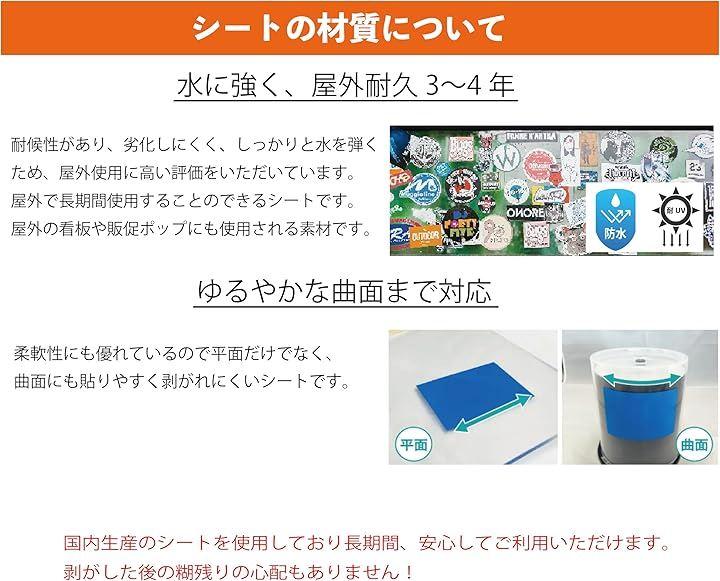 「材質」 防水、耐UV防傷ラミネート有 、素材:塩ビ 、表面:グロス(ツヤ有) 、のり面の色:シルバー 、ステッカーの台紙:紙(ホワイト)