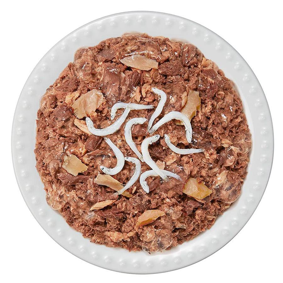 DHA、EPA、鉄分、タウリン、ビタミンEを含むまぐろとかつおの赤身肉をベースに、人気の具材をミックスしたゼリータイプの総合栄養食。