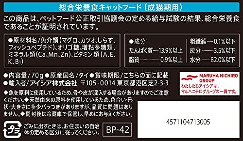 本体サイズ(幅X奥行X高さ):9.0×1.3×14.5cm本体重量:0.07kg内容量:70ml原産国:タイDHA、EPA、鉄分、タウリン、ビタミンEを含むまぐろとかつおの赤身肉をベースに、人好きの具材をミックスしたゼリータイプの総合栄養食