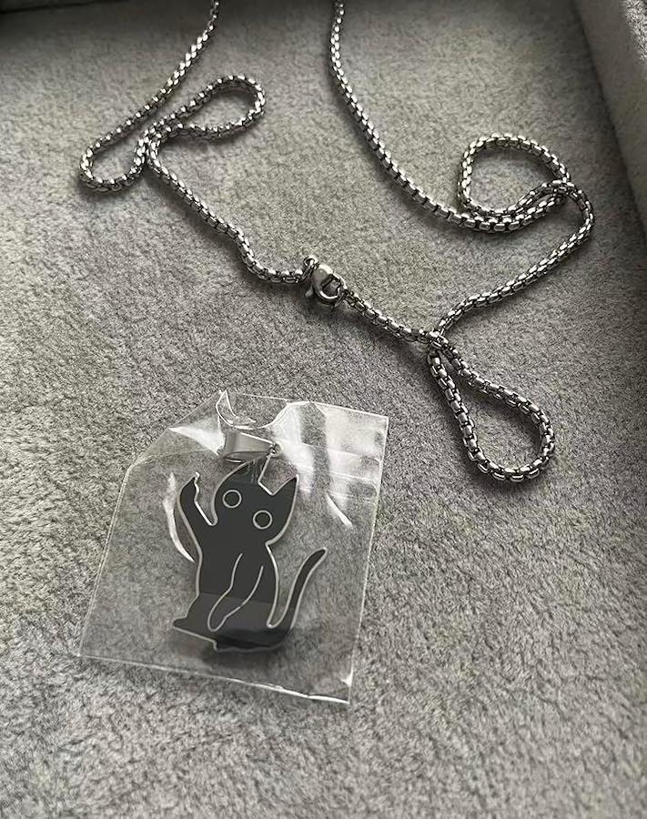 適度な太さのチェーンが黒猫トップと好相性で、重すぎず軽すぎないバランスに仕上がっています。