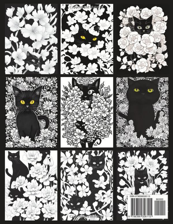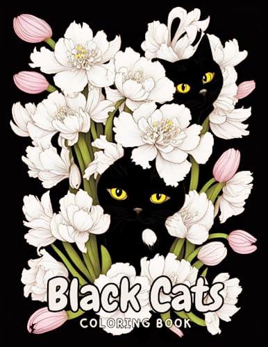Black Cats and flowers coloring book.: Coloring book adults for relaxation size 8.5"x11" and 33 pages.