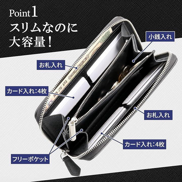 *「財布 長財布 大容量|スマートに整う仕分け構造」 札入れ2か所・カード8枚・小銭入れ・フリーポケット2か所の大容量設計。