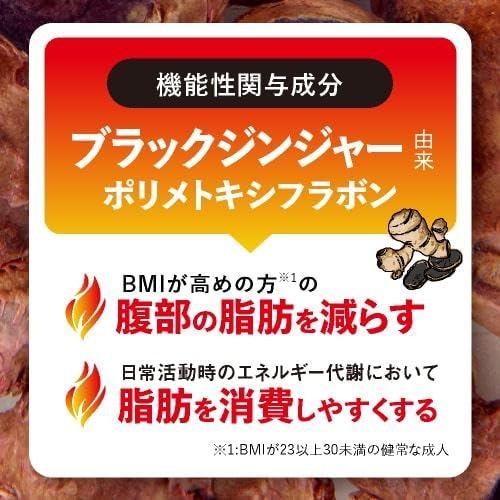 内臓脂肪や食後の血糖値が気になる方に(*1*2)。おいしいごちそうも理想のボディも諦められないなら。脂肪と糖へ多角的にアプローチする、機能性関与成分をW配合した機能性表示食品。 【 ブラックジンジャー 】ブラックジンジャー由来ポリメトキシフラボン12mg配合(*3)。『 BMIが高めの方(*1)の腹部の脂肪(内臓脂肪と皮下脂肪)を減らす 』『 日常活動時のエネルギー代謝において、脂肪を消費しやすくする 』機能が報告されています。肥満気味な方(*1)の、12週間の摂取でおなかの内臓脂肪・皮下脂肪・総脂肪の3つの面積が有意に減少しました。 【 サラシア 】サラシア由来サラシノール0.2mg配合(*3)。『 食事から摂取した糖の吸収を抑える 』『 食後血糖値の上昇をゆるやかにする(*2) 』機能が報告されています。 【 サポート成分 】ピペリンが含まれている『ヒハツエキス』、カテキンが豊富な『緑茶エキス(緑茶抽出物)』、『ニーム葉エキス』など多彩なサポート成分を配合(*4)。今すぐプラスしたい実力派成分がこれだけ配合されているのに、1日目安量3粒あたりたったの2.917kcal。頑張るあなたをしっかりサポートします。 着色料・香料・甘味料・増粘剤・コーティング剤 不使用 / (*1)BMIが23以上30未満の健常な成人 (*2)空腹時血糖値が正常域または境界域(126mg/dL未満)の健常な成人 (*3)1日目安量3粒あたり (*4)機能性関与成分ではございません。また、機能性関与成分との相乗効果はありません。