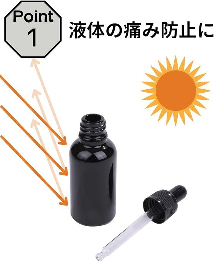 「ガラス製の遮光瓶で液体の痛み防止に」熱や紫外線から守るので中身の液体の傷みを防止します。