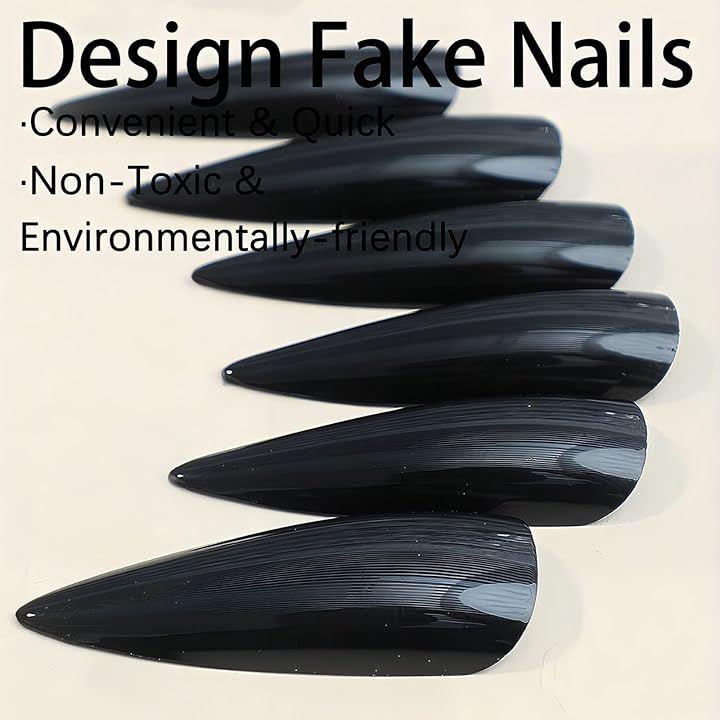 Black Nail Tips, False Nails, Gal, Korean, Cute, Landmine Style, Handmade Black, Simple, Kogal, Almond