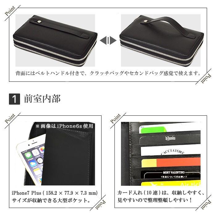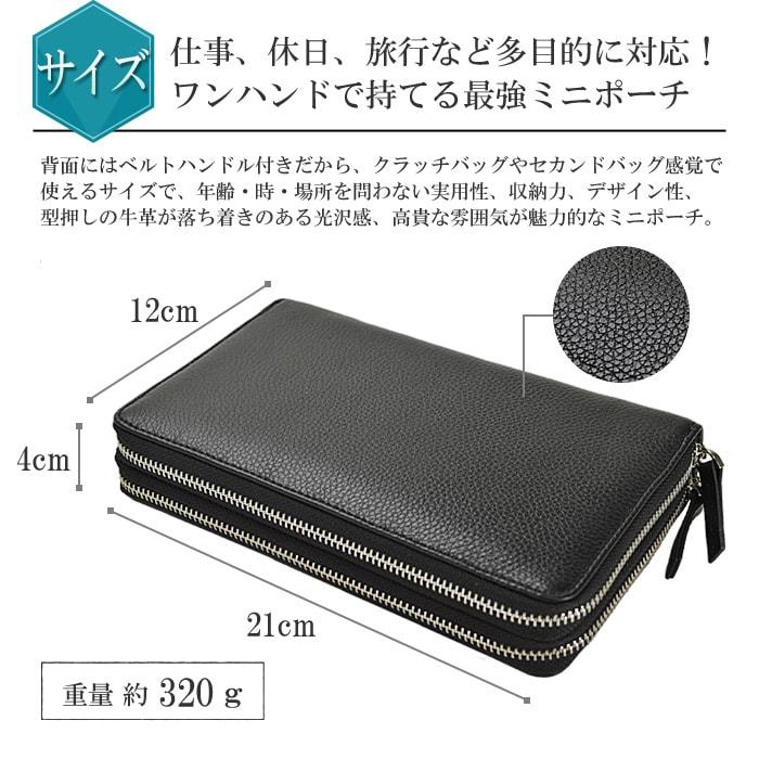 ◆収納を2室に分けた事で必要な物はすべて入るほどの大容量、機能性が備わったワンハンドで持てるミニポーチ。◆カードやレシート、領収書などの小物の仕分けも楽にでき、iPhone7 Plus(158.2×77.9×7.3(mm))が入る大型ポケットも便利!◆散らかしがちなカードは、10枚収納できる上、見やすいので整理整頓しやすい!◆柔らかい牛革製だからカードの出し入れもしやすいので最初から使いやすいです。◆背面にはベルトハンドル付きだからクラッチバッグやセカンドバッグ感覚でお使いいただけます。◆年齢・時・場所を問わない実用性、収納力、デザイン性、型押しの牛革が落ち着きのある光沢感、高貴な雰囲気が魅力!