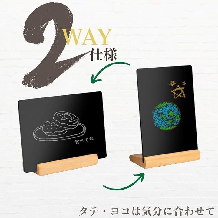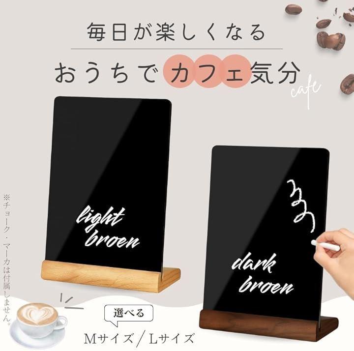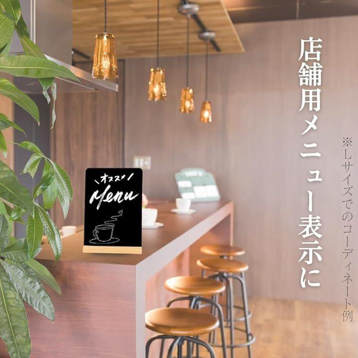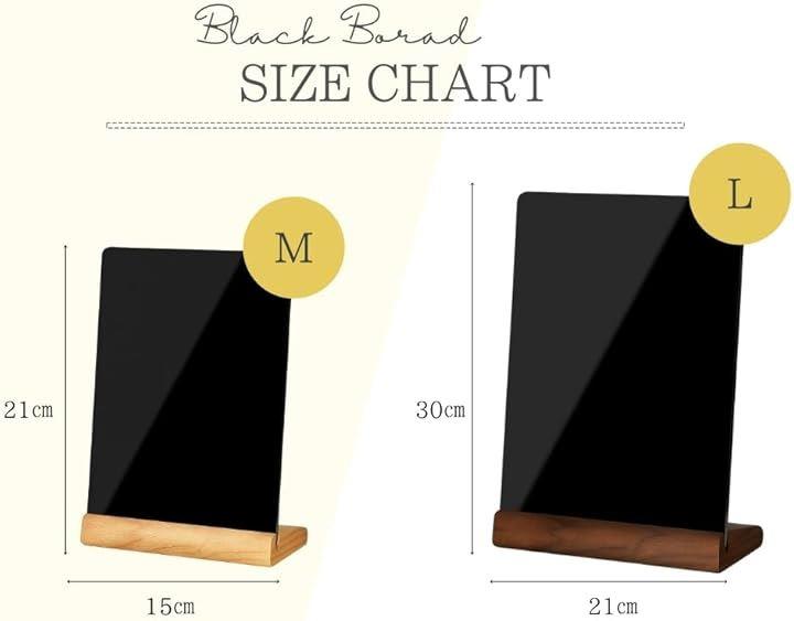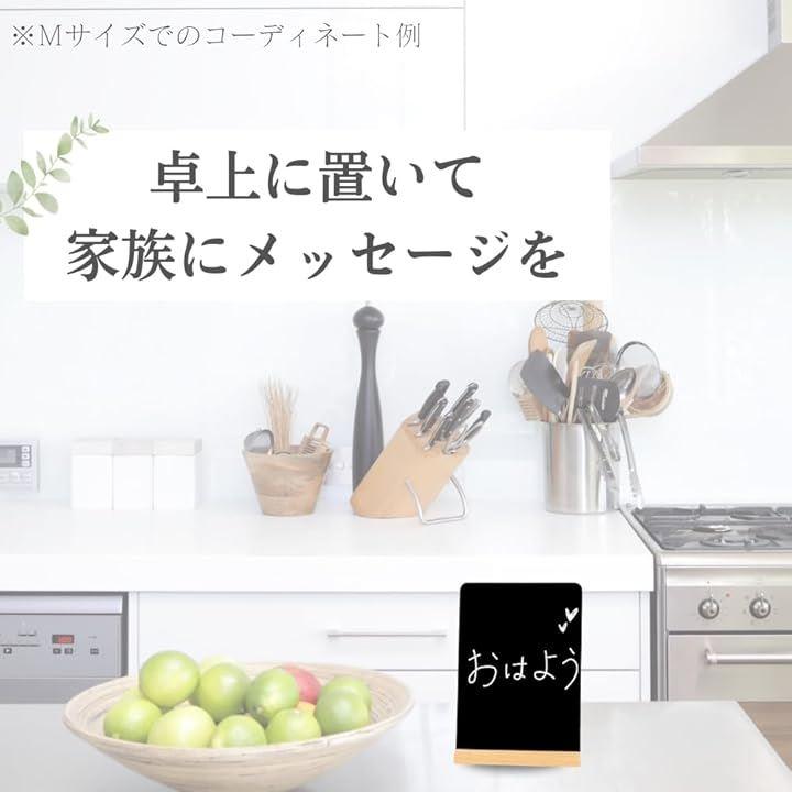 「選べるサイズで自由に」M(210x150 mm)/L(300x210 mm)の2サイズ展開で、店舗やカフェ、家庭でも使用シーンに合わせて選べる卓上黒板です。