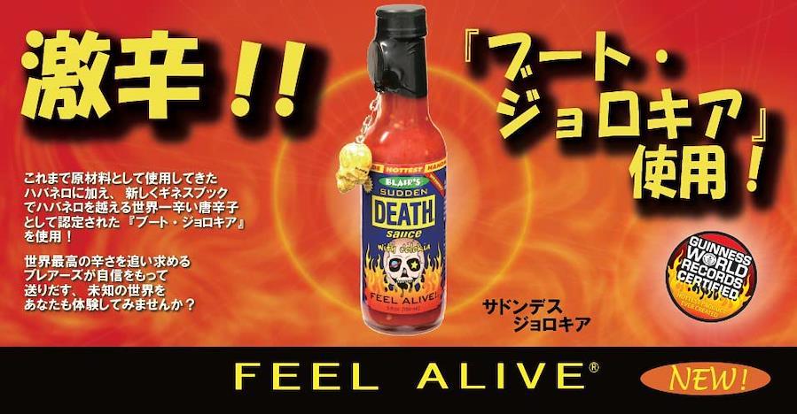 ギネスブックで"世界一辛い唐辛子"と認定された「ブートジョロキア」を主原料に製造したホットソース。「ブートジョロキア」はすっきりとした辛さが特徴で、フライドチキン、ハンバーガー、シーフード等の洋食だけでなく「日本食」にも良く会います。