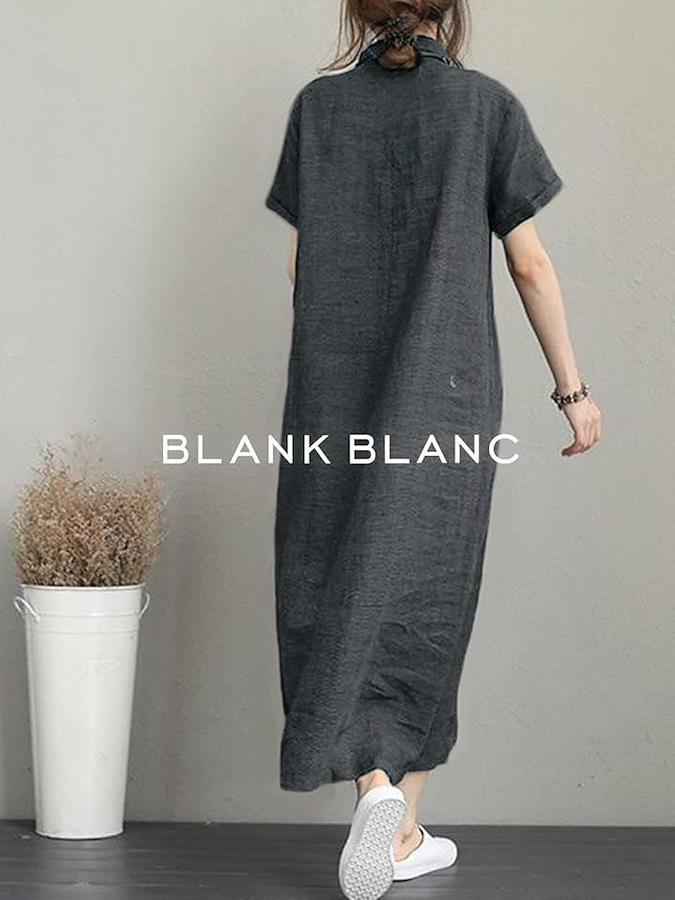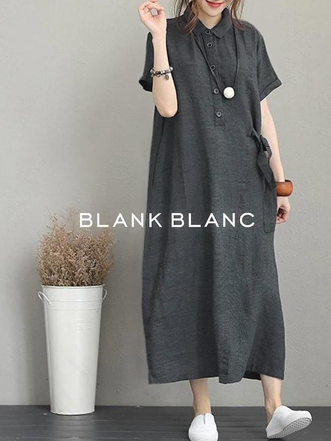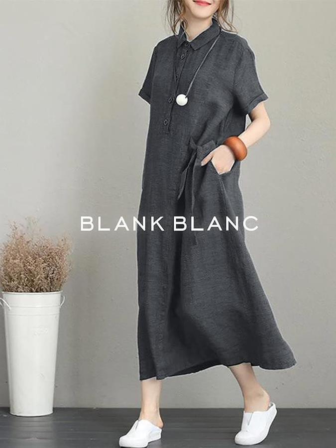 Blanc Blanc One-piece dress, long length, short sleeves, summer, loose, figure-covering, casual, thin, short sleeves, women's, mass-produced, wide collar, plain, stylish, large size, large, simple, Japanese style, cute, loose, cute, simple shirt, 3S-B21
