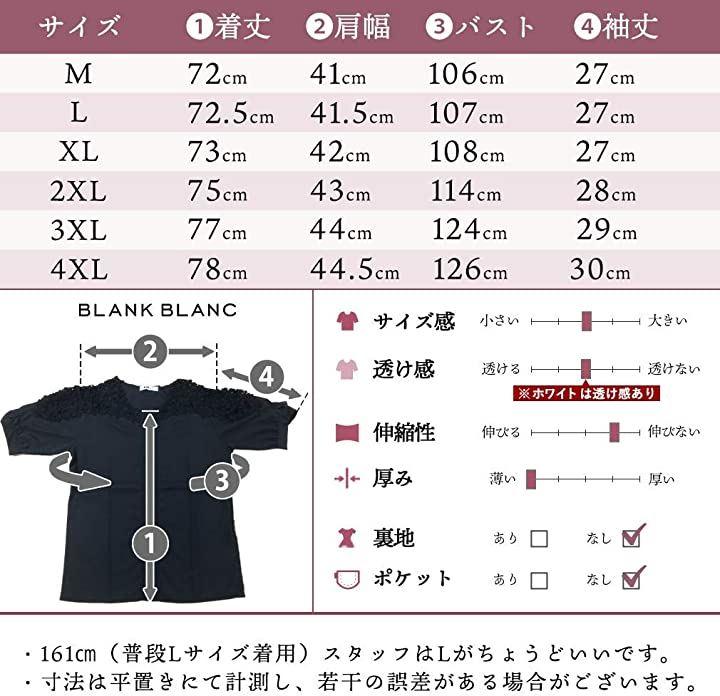・サイズ:着丈/肩幅/バスト/袖丈(cm)「M」72/41/106/27「L」72.5/41.5/107/27 「XL」73/42/108/27「XXL」75/43/114/28「3XL」77/44/124/29「4XL」78/44.5/126/30