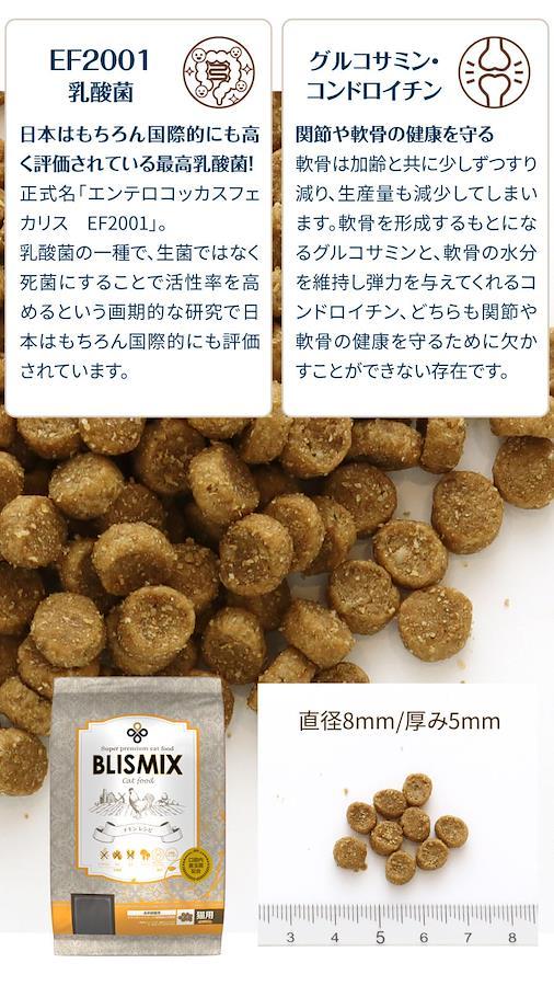 【原材料へのこだわり】・ブリスミックスは、アレルギーの原因になりやすい肉副産物・人工保存料・着色料は使用していません。また猫が消化を苦手とするでんぷん質の多い、小麦・大豆・とうもろこしも不使用。愛猫に安心して与えて頂ける素材を人間の食品基準で厳選しています。