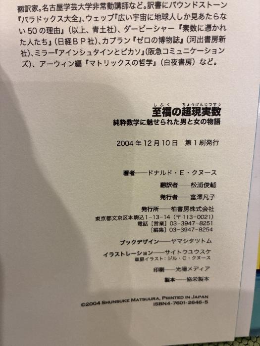 a03-251107001001015-000至福の超現実数: 純粋数学に魅せられた男と女の物語 柏書房 ドナルド・E. クヌース