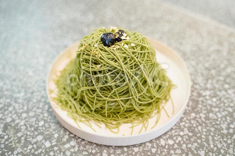 Aside from the classic chestnut cream, Matcha Mont Blancs are popular as well.